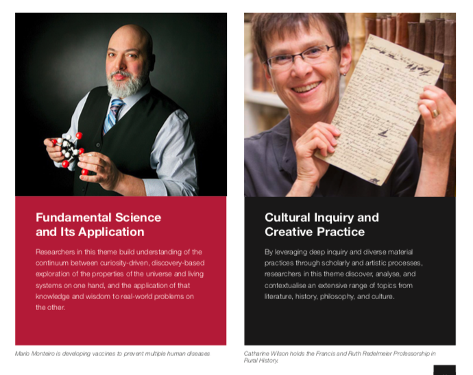 The creative direction is based on large format images and the stories of the research and the researchers who will propel the University’s research program forward for the next five years.