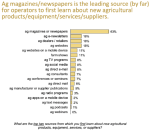 The 2020 Media Channel Study, put out by the Agri Media Committee, sheds some light. Although the study is US based, a similar study conducted in 2018 demonstrated the media consumption habits of Canadian and US farmers track very closely together. The results are borne out by proprietary research conducted by Glacier Farm Media, the leading publisher of agricultural titles, traditional and digital, in Canada.